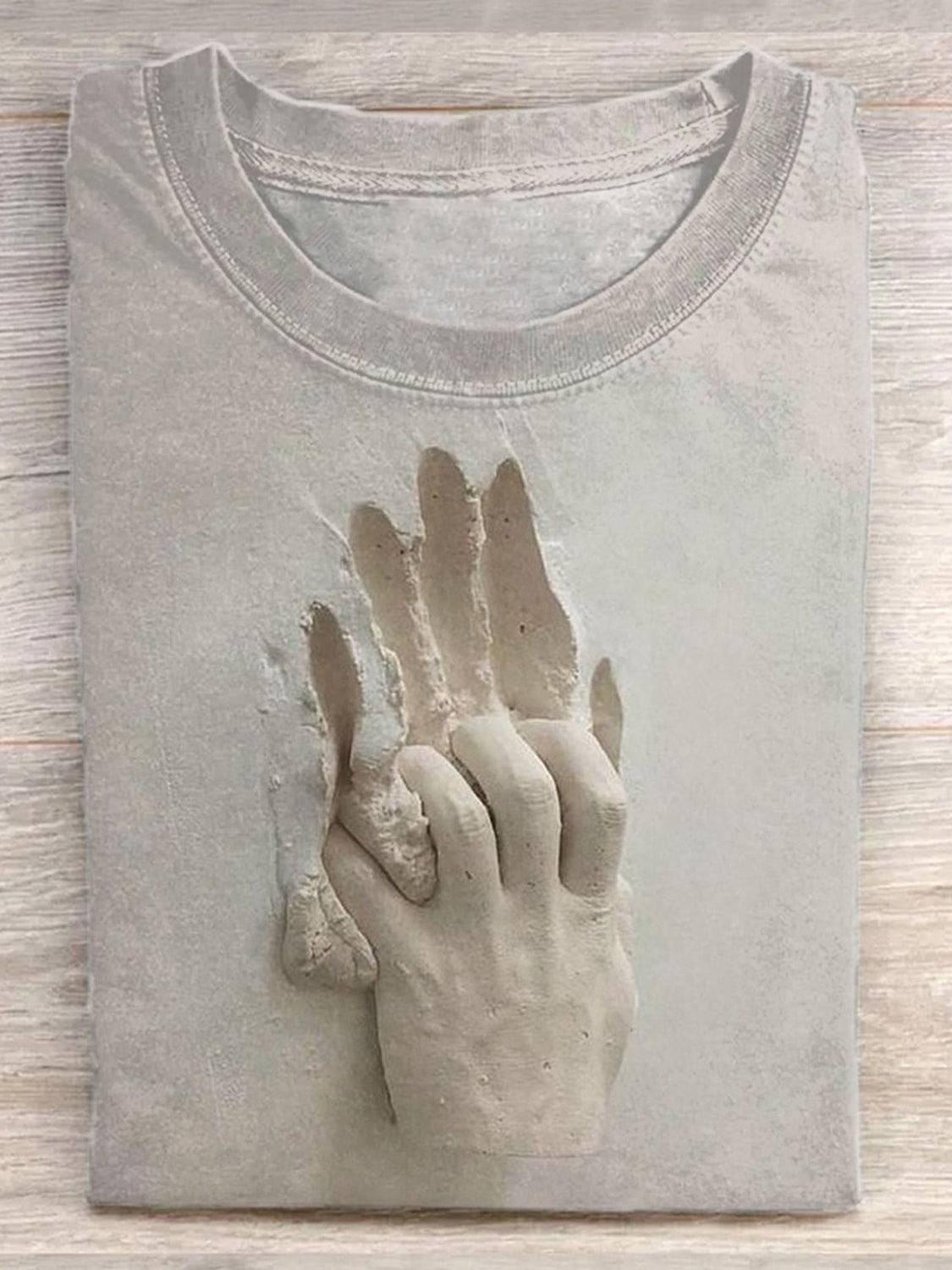 Unisex Vintage Hand Art Sculpture Print Casual Short Sleeve T-Shirt