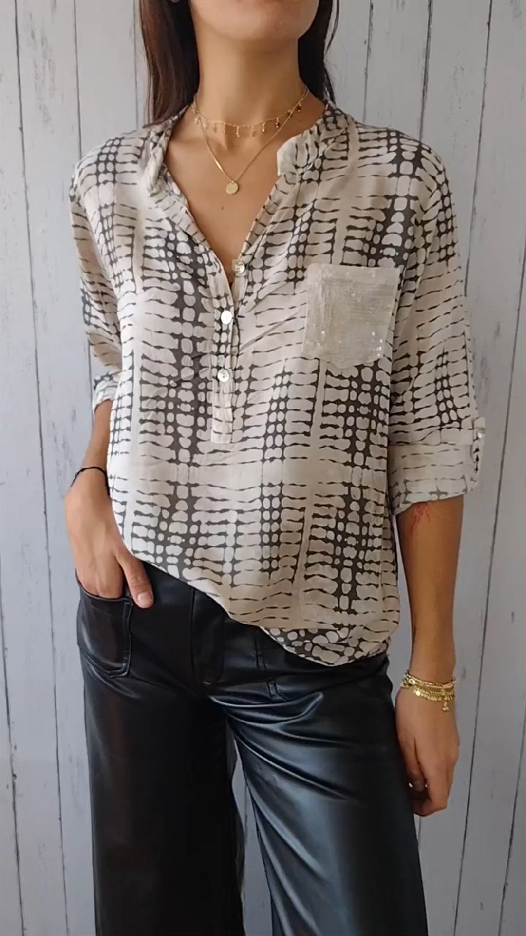 V-neck Half-button Plaid Design Shirt