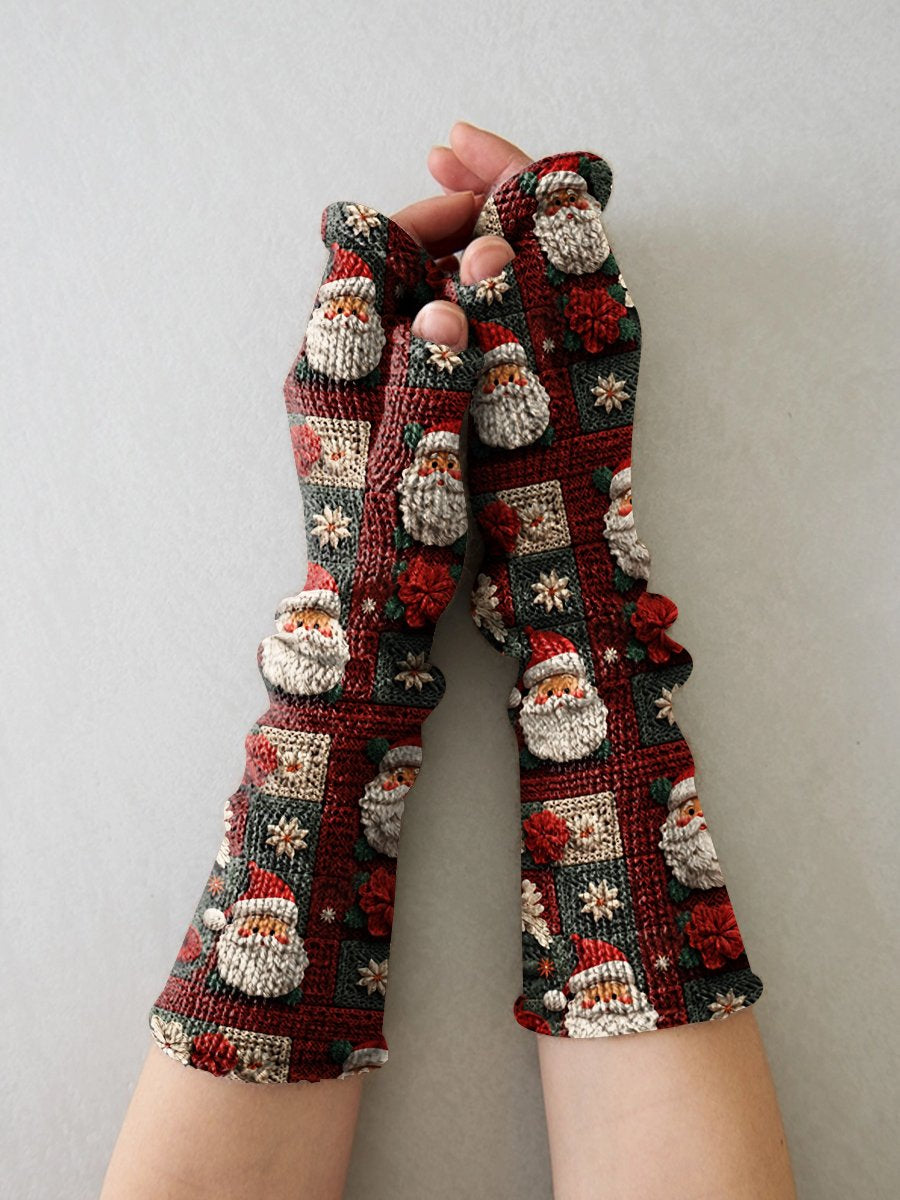 Vintage Christmas Seamless Pattern Print Casual Knit Gloves, Leg Sets,Hat