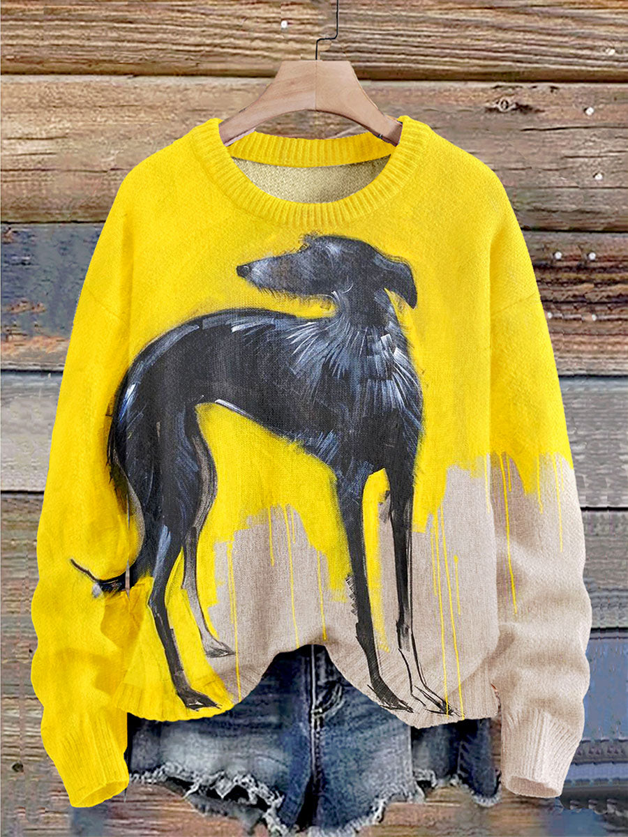Vintage Dog Art Print Knit Pullover Sweater