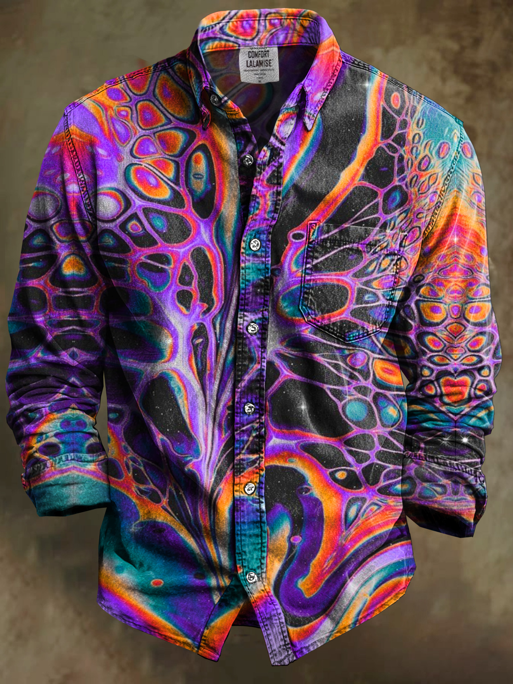 Vintage Multicolor Fantasy waves Art Print 100% Cotton Long Sleeve Shirt