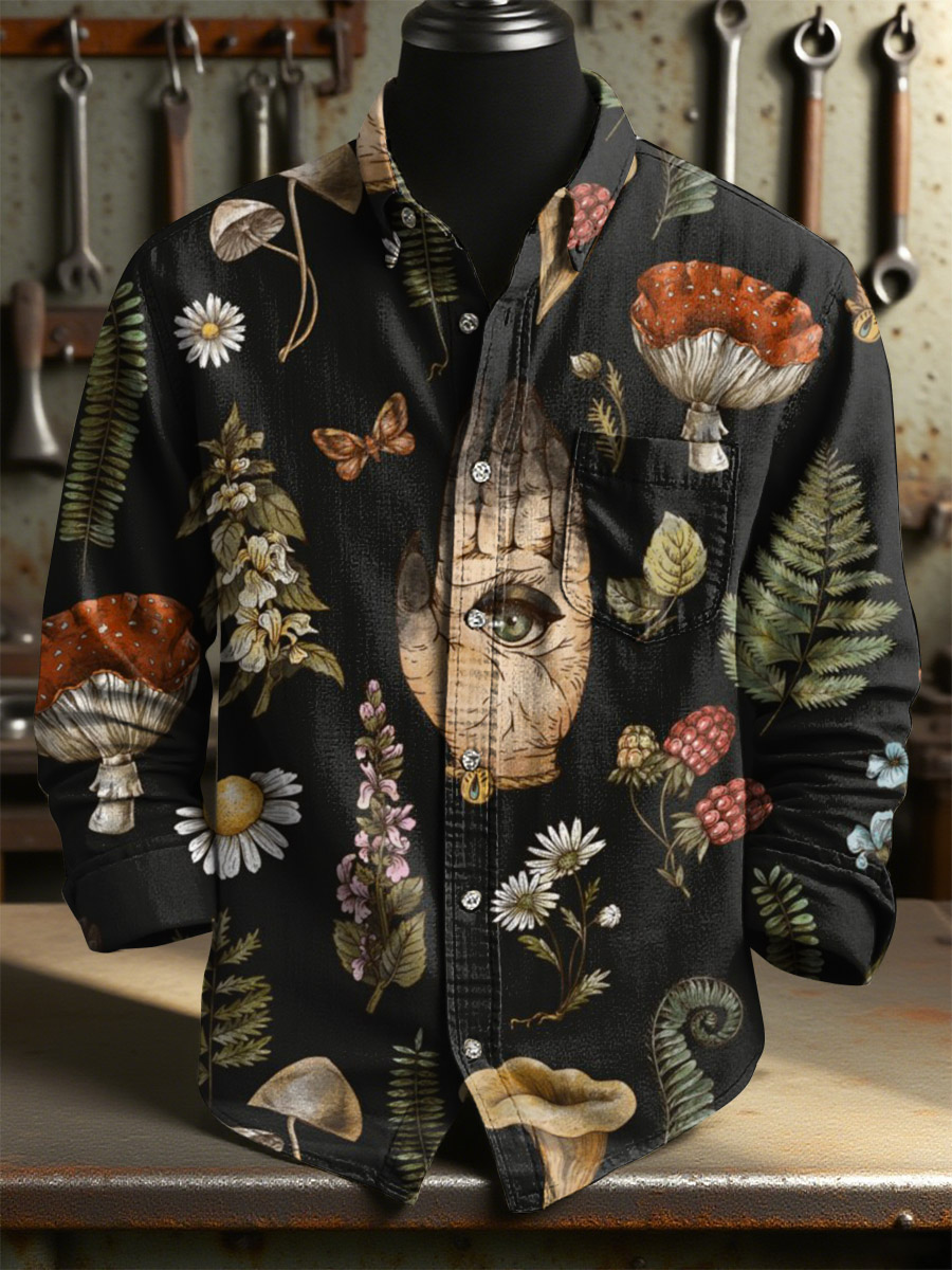 Vintage Mysterious Fantasy Mushroom Art Print 100% Cotton Long Sleeve Shirt