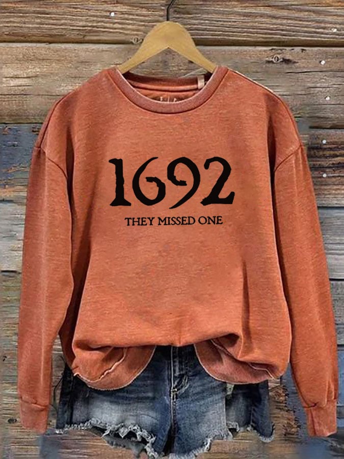 Women's 1692 They Missed One Salem Witch Printed Round Neck Long Sleeve Sweatshirt