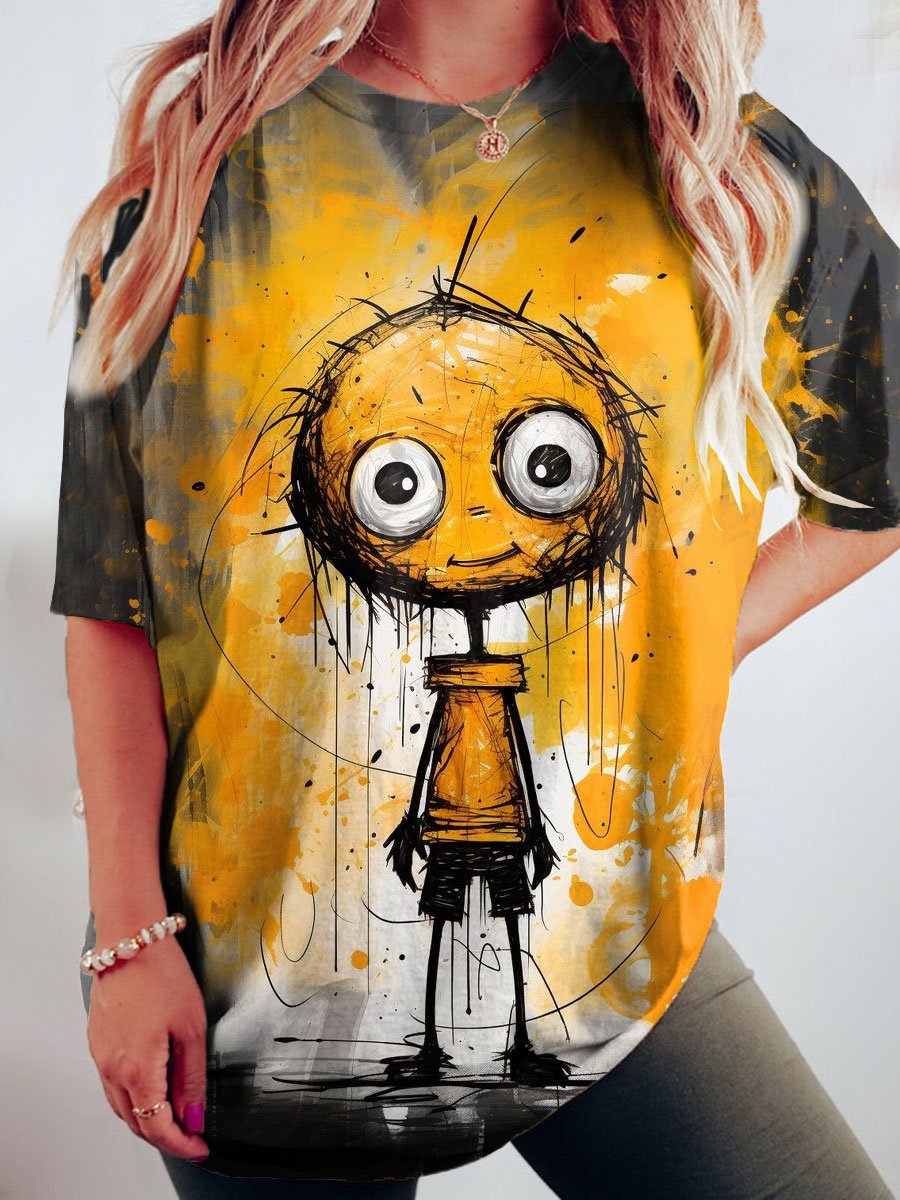 Women's Art Print Crew Neck Causl Shirt