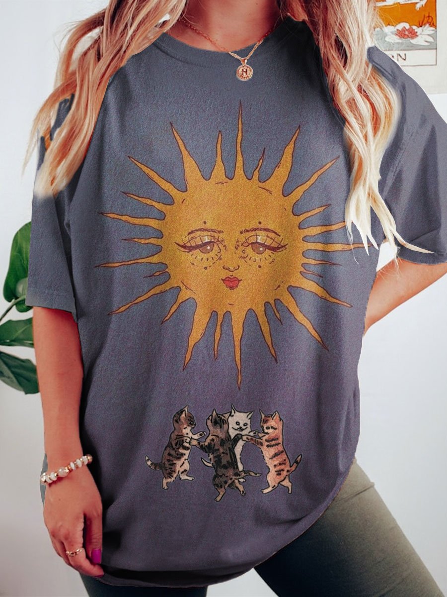 Women's Cat Art Print Crew Neck Causl Shirt