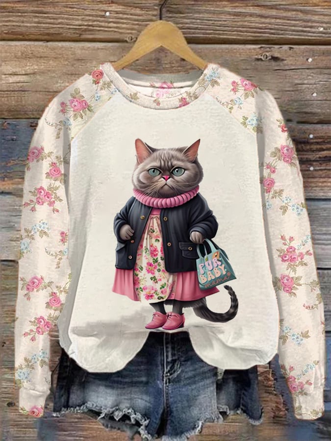 Women's Cat Print Casual Long Sleeve Sweatshirt