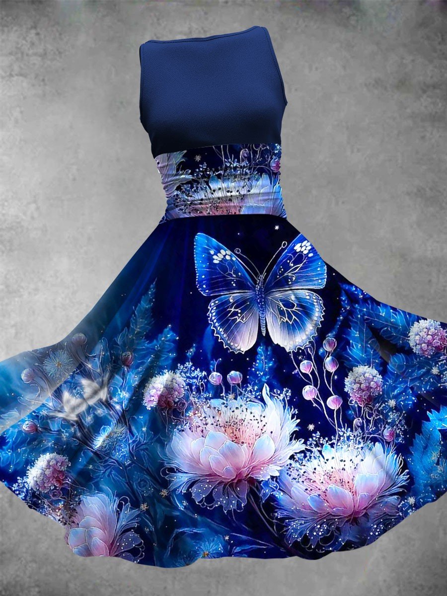 Women's Classic Casual Gradient Butterfly Pattern Midi Dress