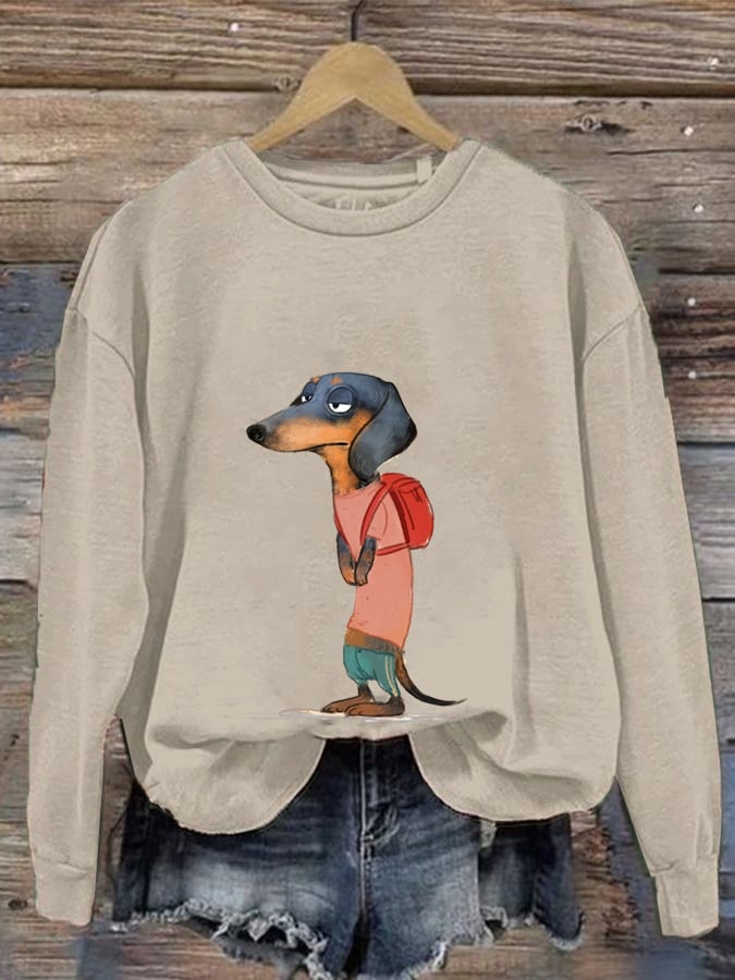 🔥Buy 3 Get 10% Off🔥Women'S Cute Dog Print Crew Neck Casual Sweatshirt