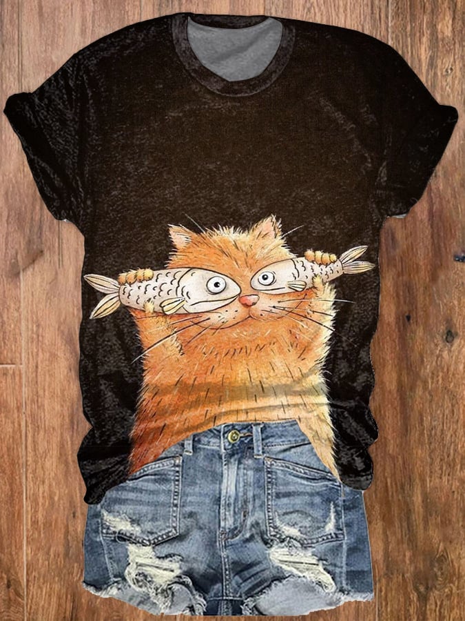 🔥Buy 3 Get 10% Off🔥Women's Fun Cat Print Round Neck Short Sleeve T-Shirt