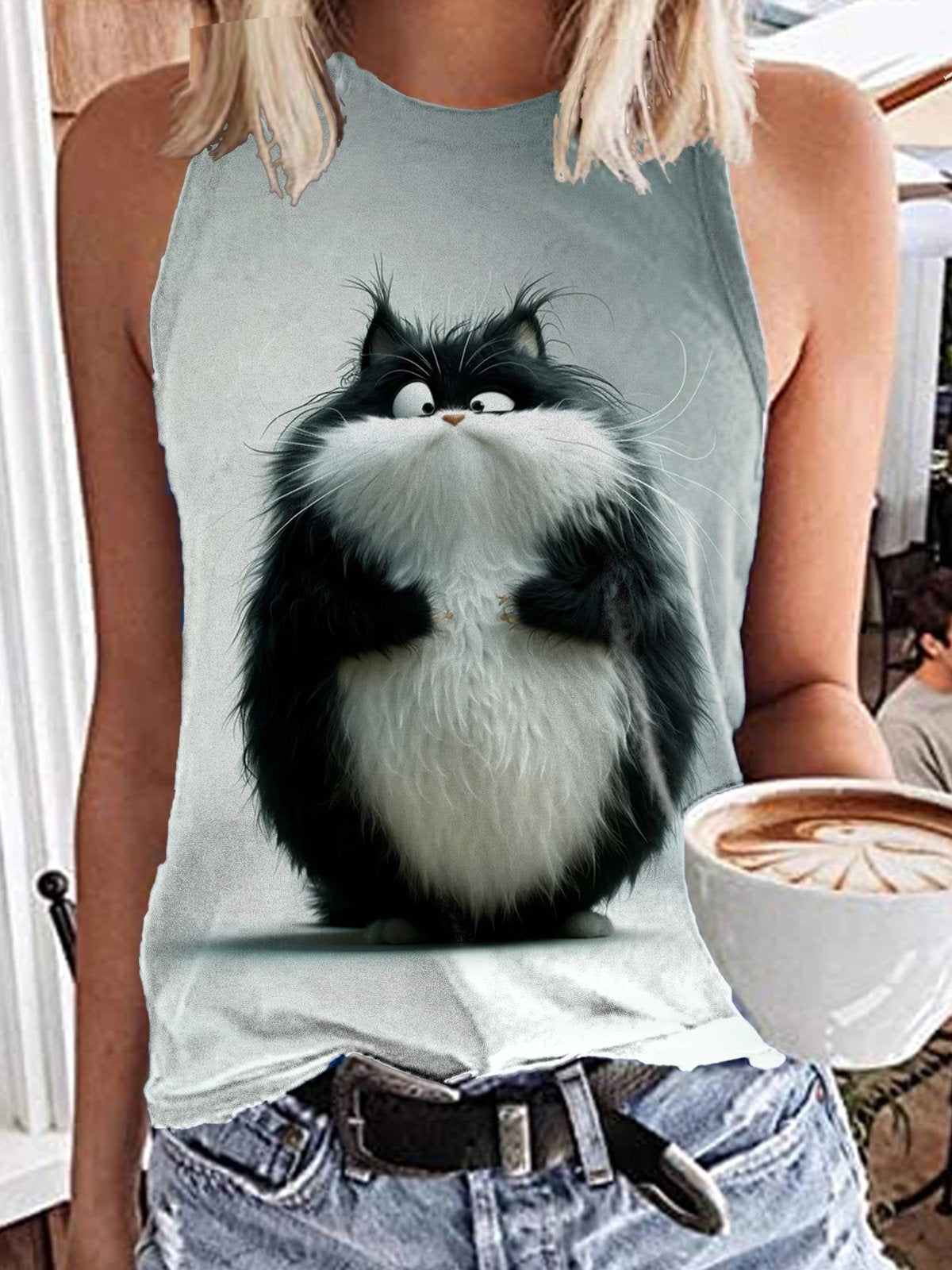 Women's Funny Cat Print Tank Top