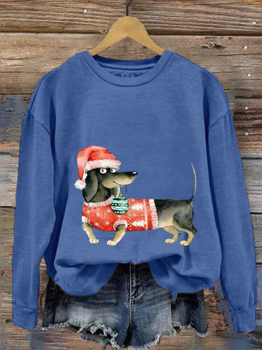 Women's Merry Christmas Cute Dachshund Dog Print Casual Sweatshirt