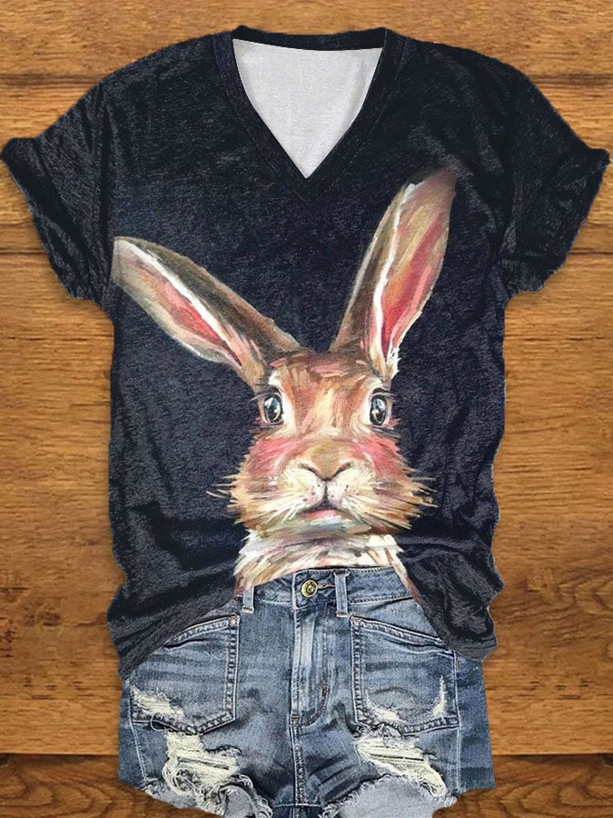🔥Buy 3 Get 10% Off🔥Women's Watercolor Rabbit Print V-Neck T-Shirt